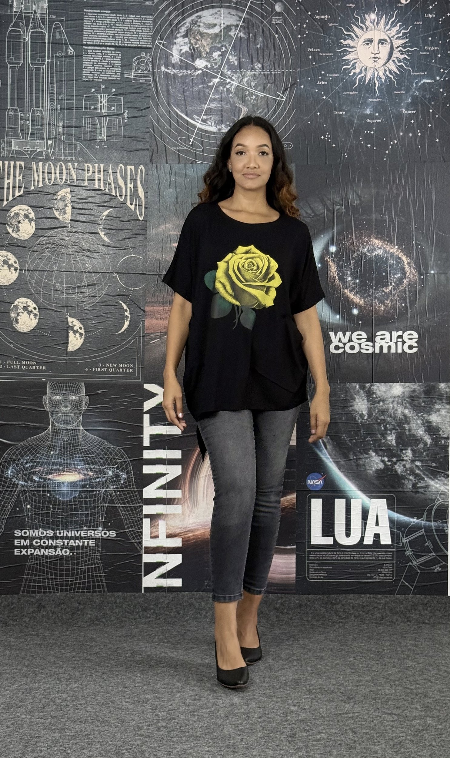 A Blusa Ampla Bolso é fluida e soltinha, com bolso frontal e ponta diagonal nas costas. Confeccionada em viscose com elastano, é moderna, confortável e cheia de estilo.