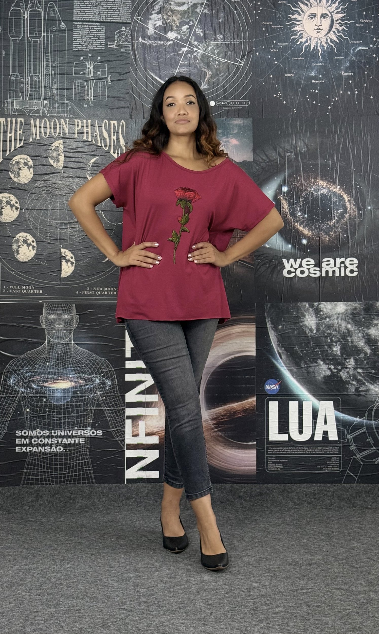 Blusa Mãe Rosa Vermelha Bordada - BORDÔ