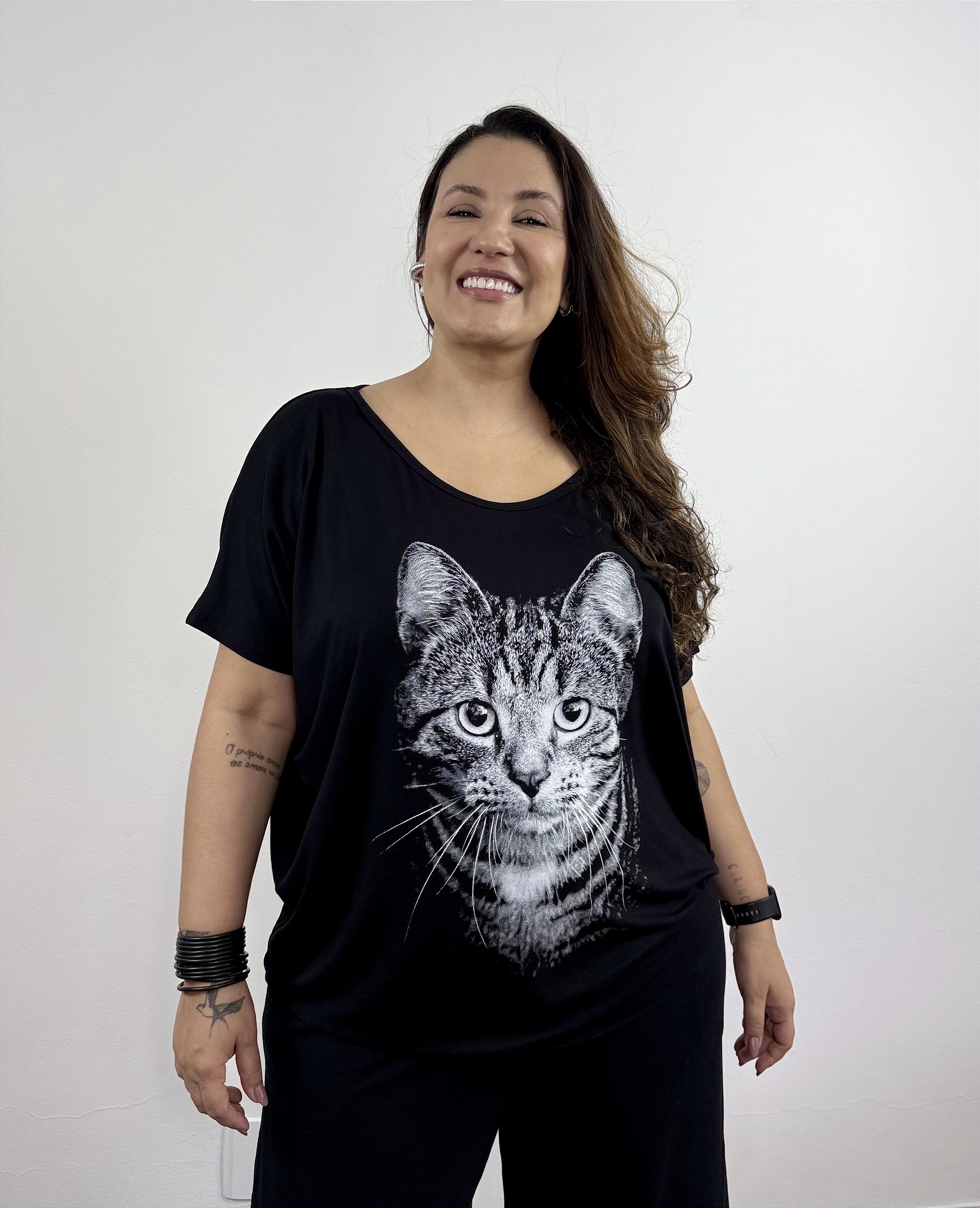 Blusa Tule Costa Gato - PRETO
