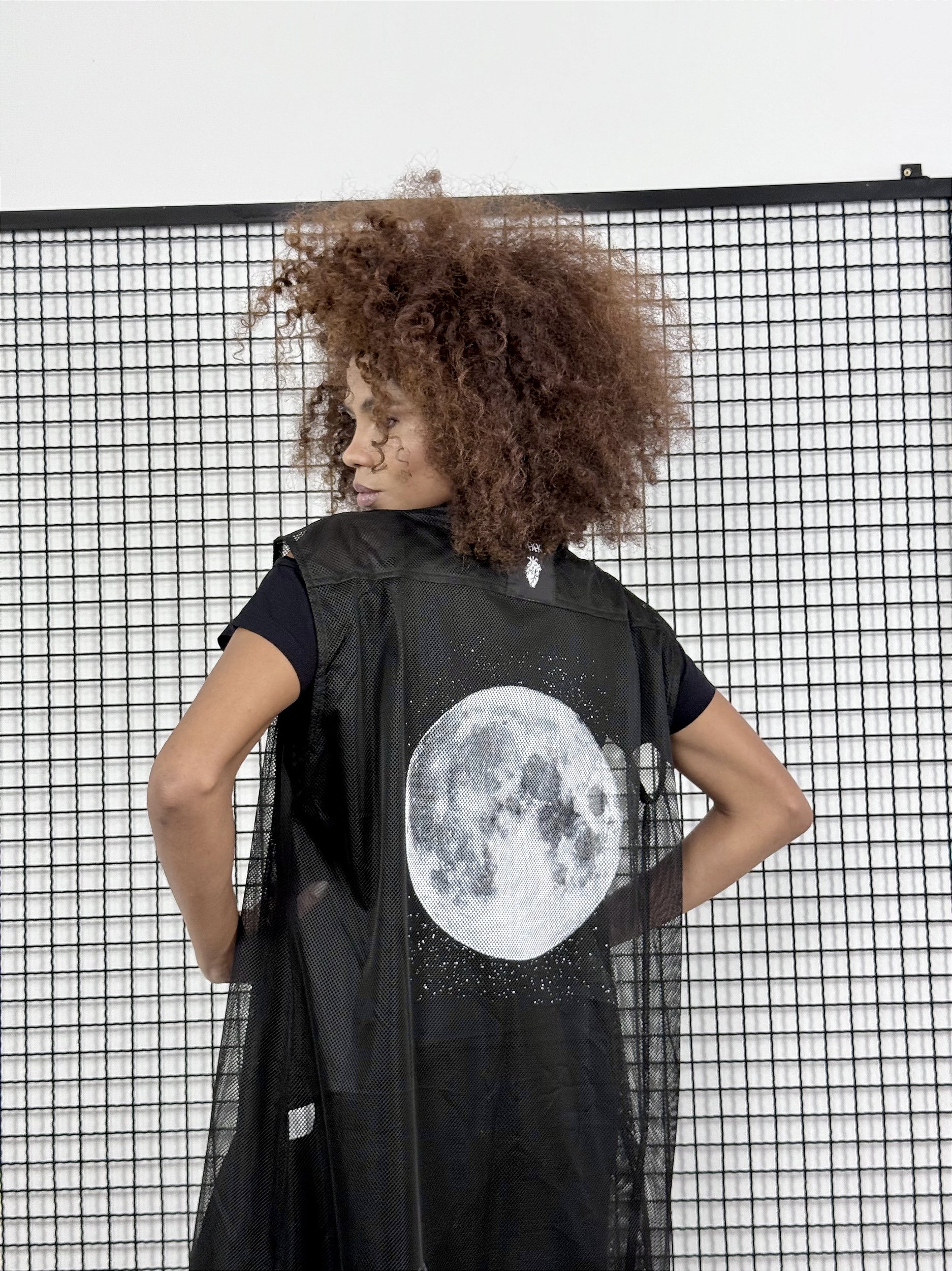 O Camisão Tela combina tecido em tela e estampa nas costas, sendo perfeito para sobreposições e looks modernos. Versátil, elegante e cheio de estilo, também pode ser usado como kimono, agregando personalidade a qualquer produção.