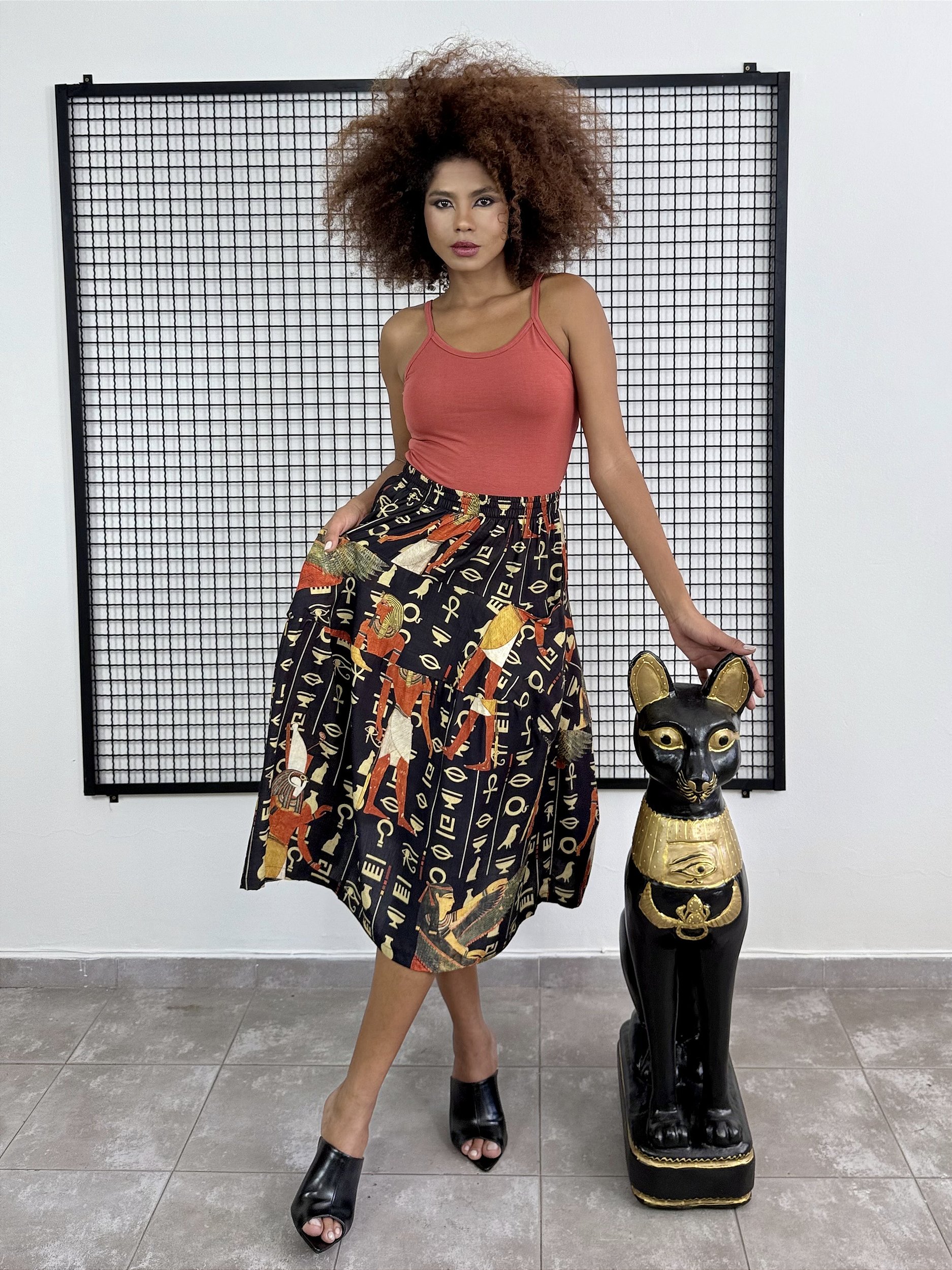 A Saia Recortes Viscose combina recortes estratégicos e prega central, criando volume,