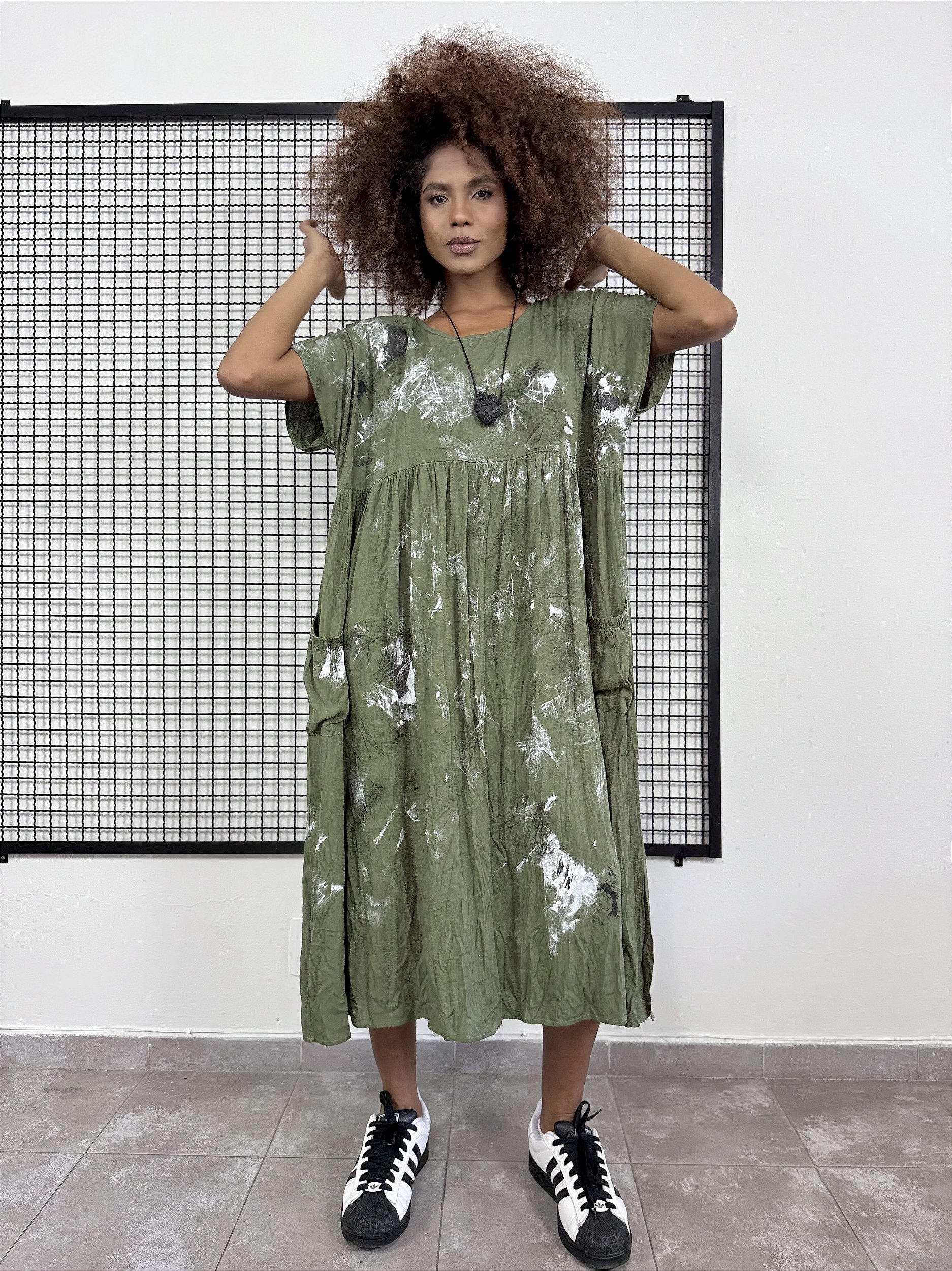 Vestido Balenciaga Pintado a Mão - VERDE EXERCITO