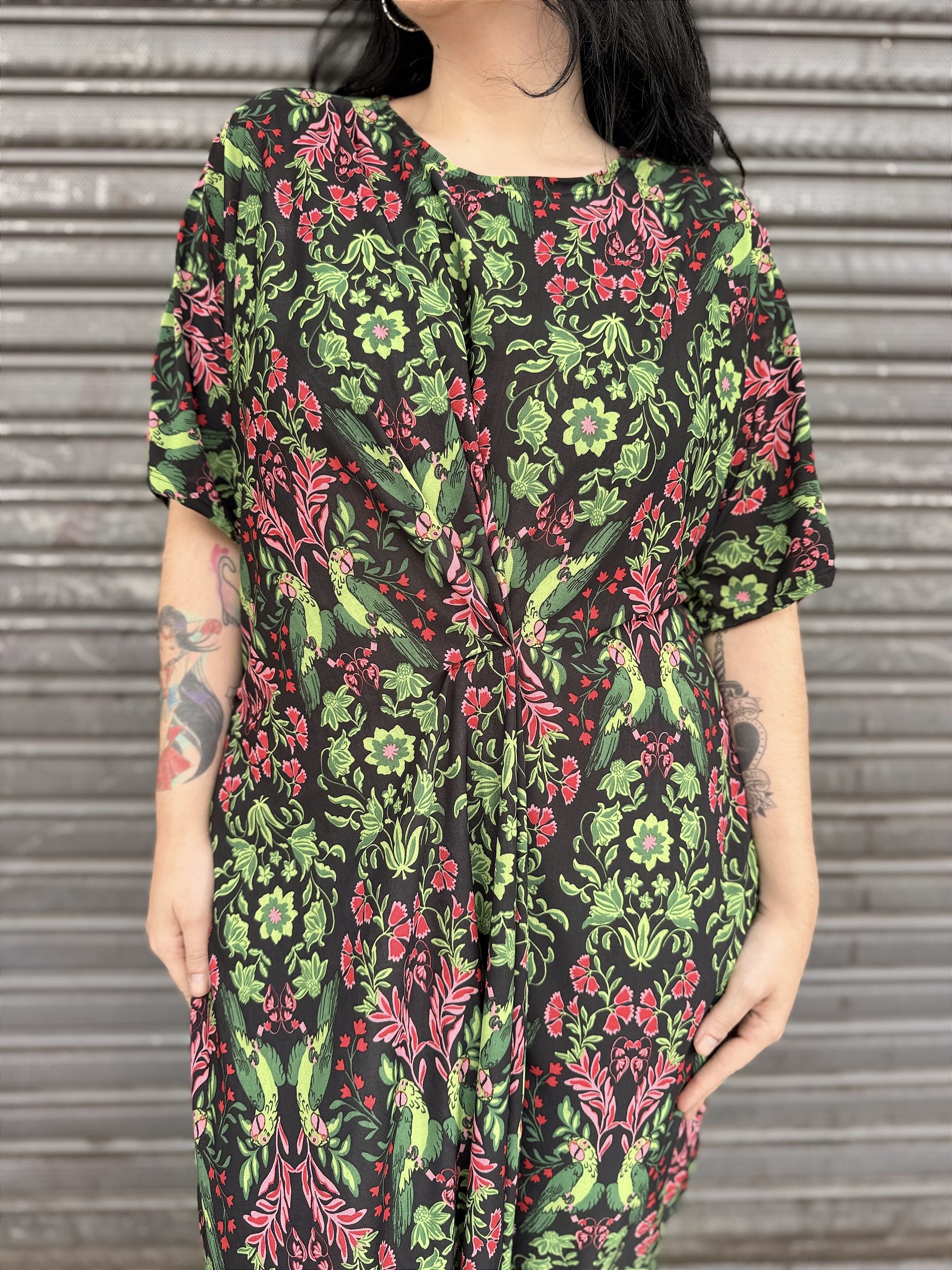 Inspirado na estética livre e contemporânea do estilista Kenzo Takada, esse vestido traduz uma moda mais expressiva, confortável e autêntica.